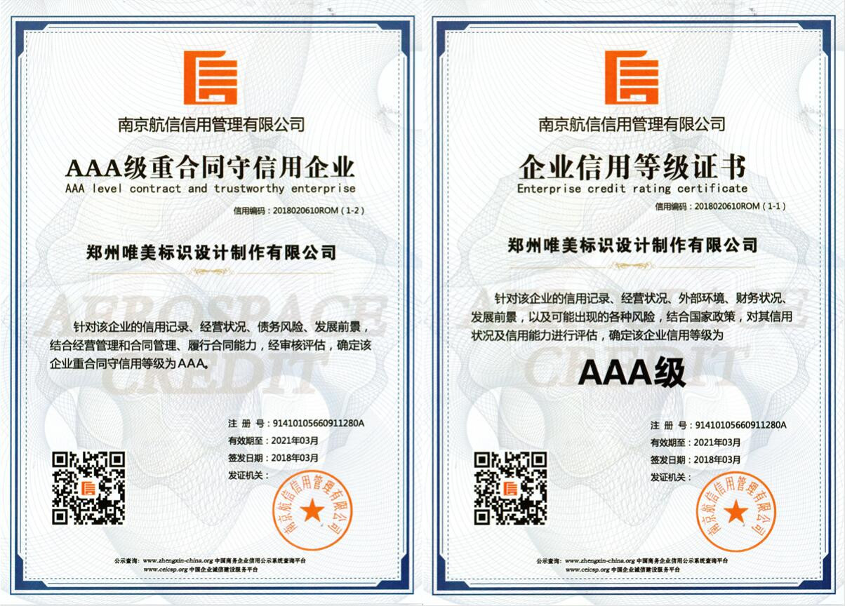 生產制作的每一件產品的原材料嚴格按照國家標準執行,產品質保最長10年;免費上門服務、免費深化標識設計方案、免費鄭州市內送貨上門;口碑廣為流傳、70%客戶來自于老客戶轉介紹;